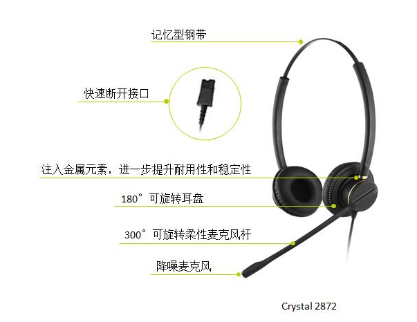 Crystal2871/2872艾德聲聯絡中心和辦公室的高端降噪耳機
